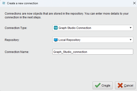 In Altair AI Studio, right-click on the repository where you want to store your Altair Graph Studio connection, and choose Create connection.