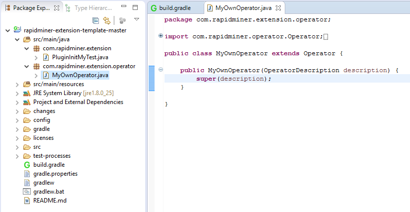. - Create a new Java class with a meaningful name. The class has to extend Operator from the RapidMiner core. You have to override the constructor.